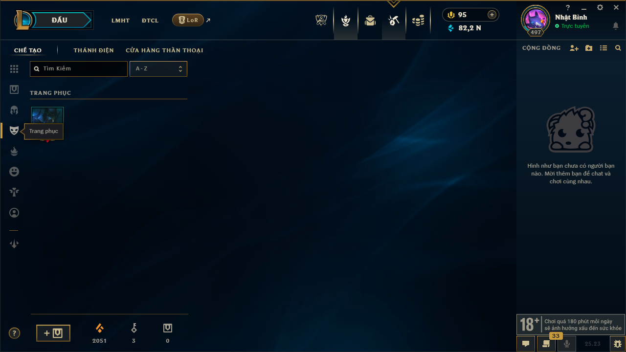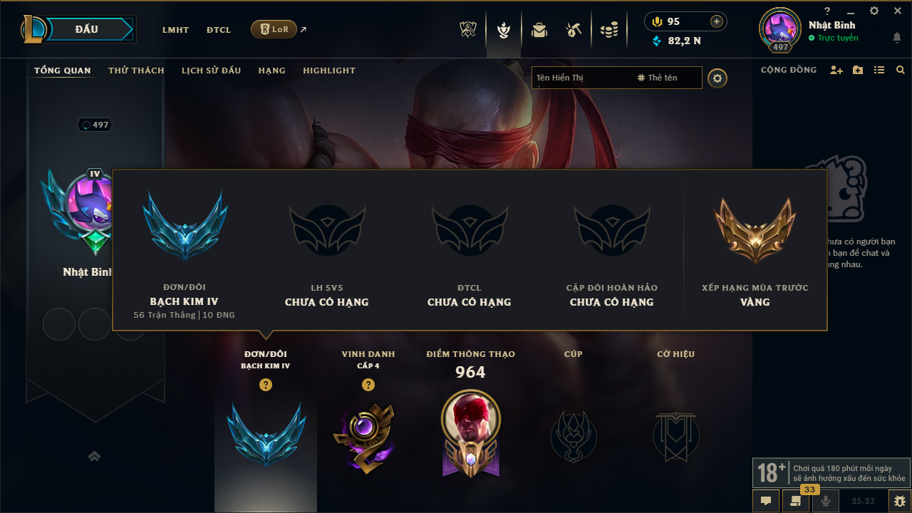 Acc Liên Minh #12411 - Rank: Bạch Kim - Khung: Vàng