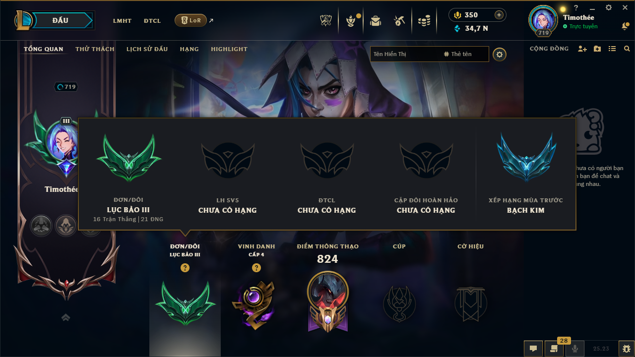 Acc Liên Minh #12427 - Rank: Lục Bảo - Khung: Bạch Kim