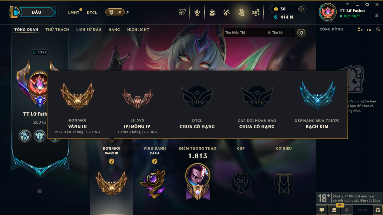 Acc Liên Minh #12609 - Rank: Vàng - Khung: Bạc